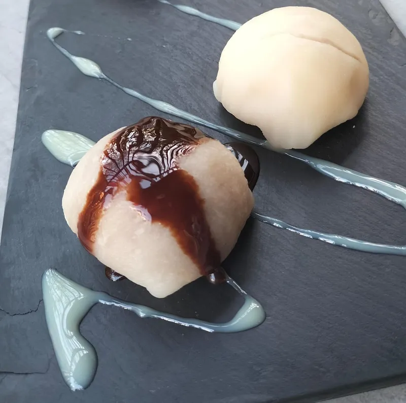 Masa de arroz glutinoso con relleno de crema de limón y chocolate